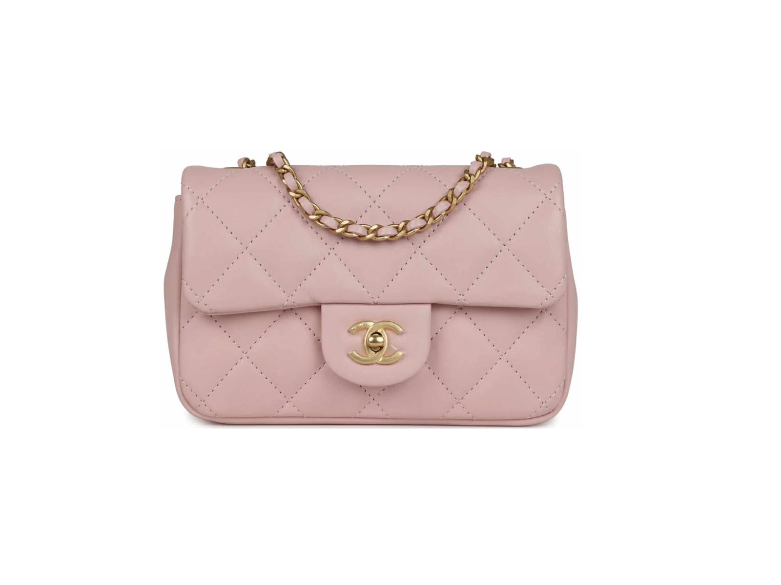Chanel Mini Rectangular Flap Bag with Heart Chain Pink Lambskin Brushed Gold Hardware