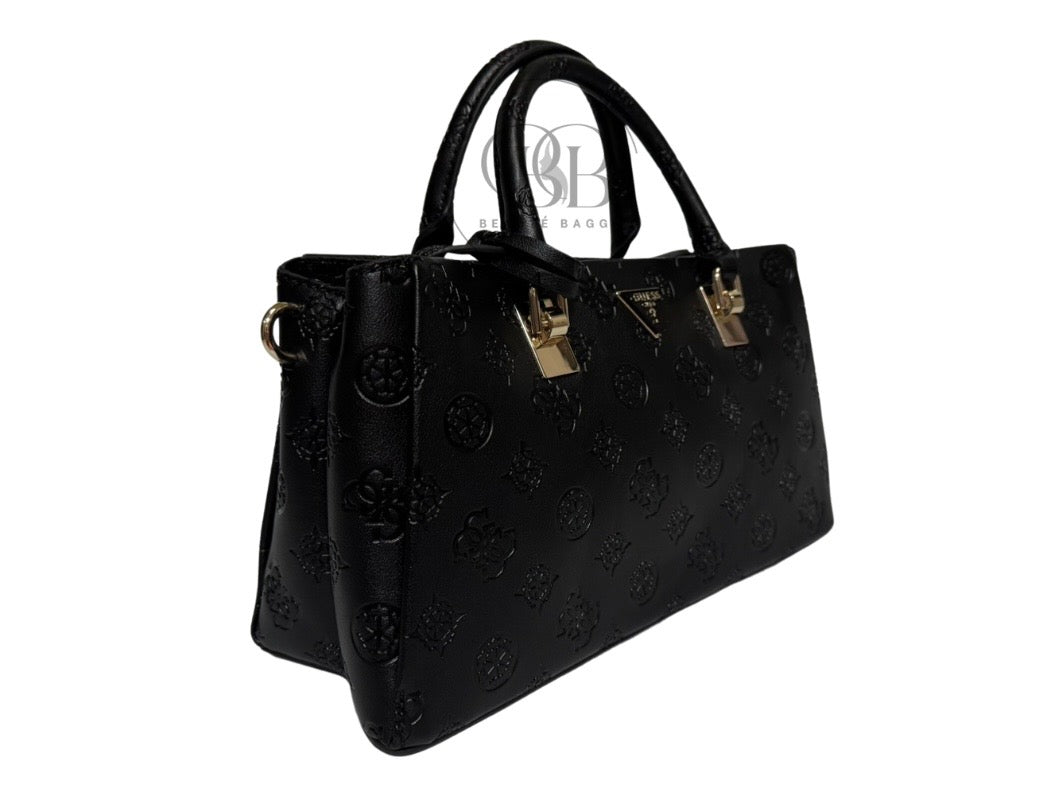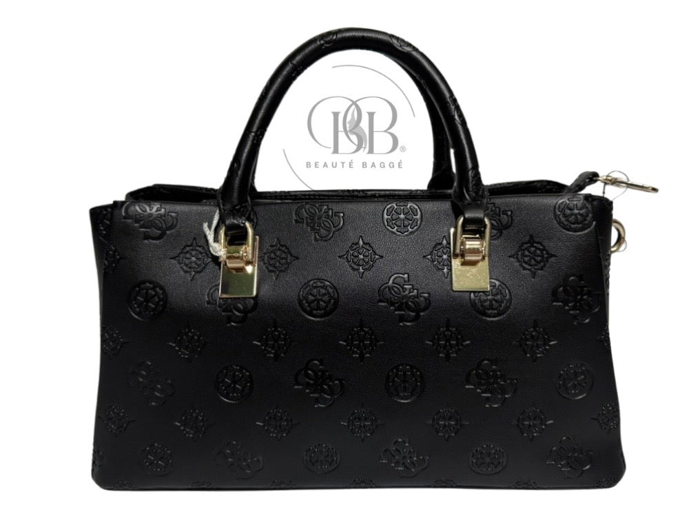 GUESS TISHA DEBOSSED PEONY GIRLFRIEND SATCHEL (BLACK LOGO)