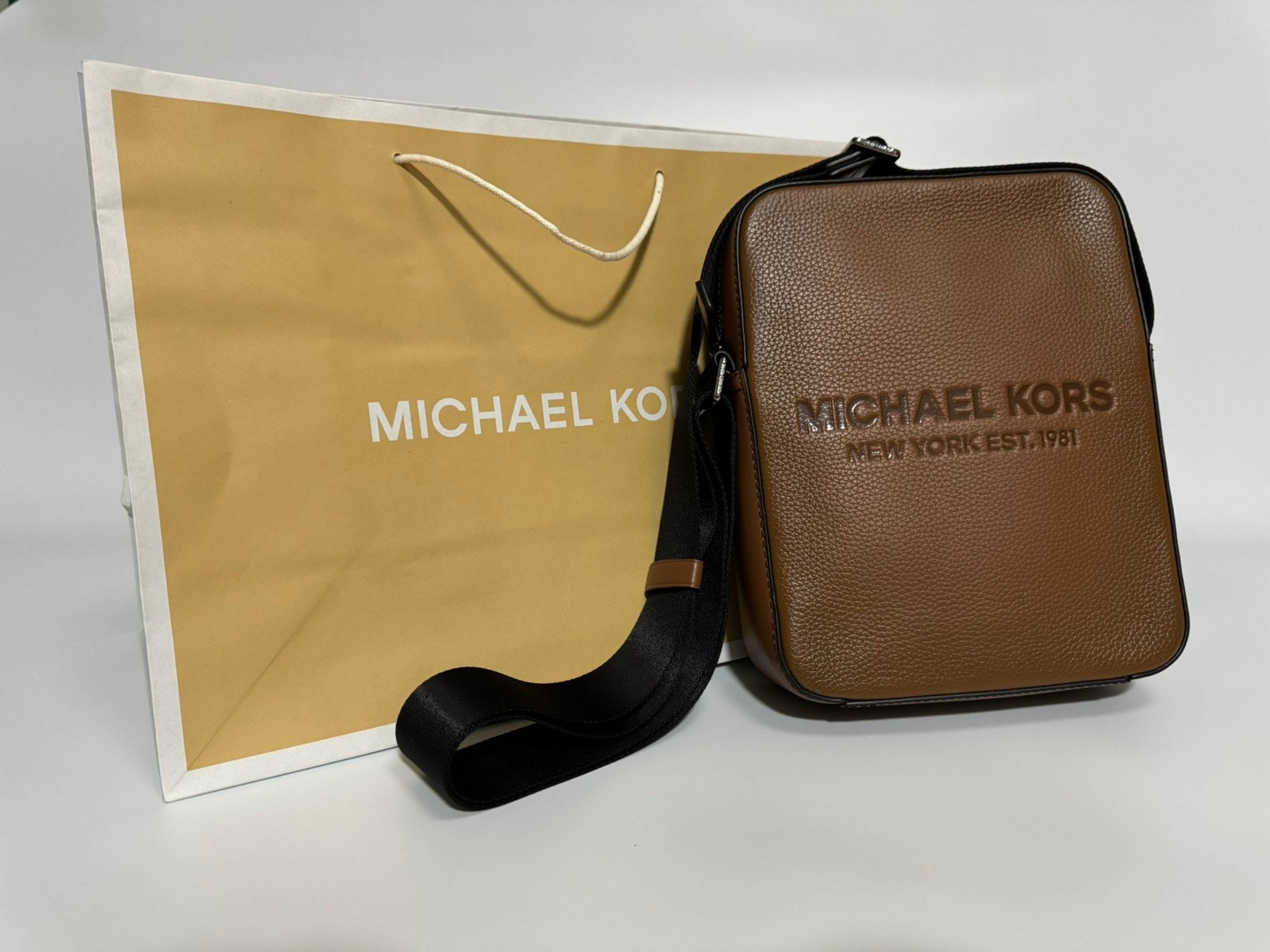 Michael Kors Cooper Logo Embossed Pebbled Leather Flight Bag (Brown)
