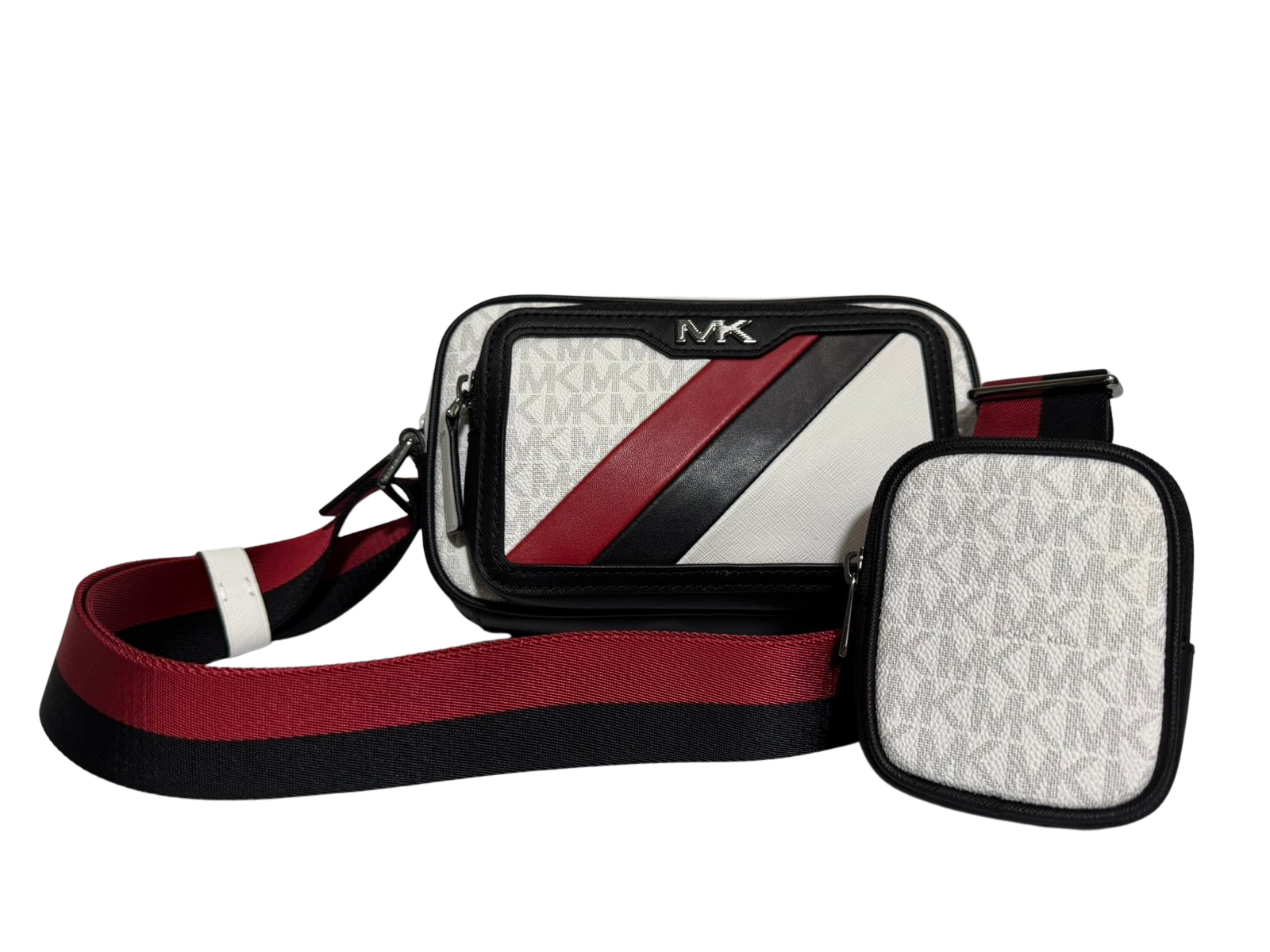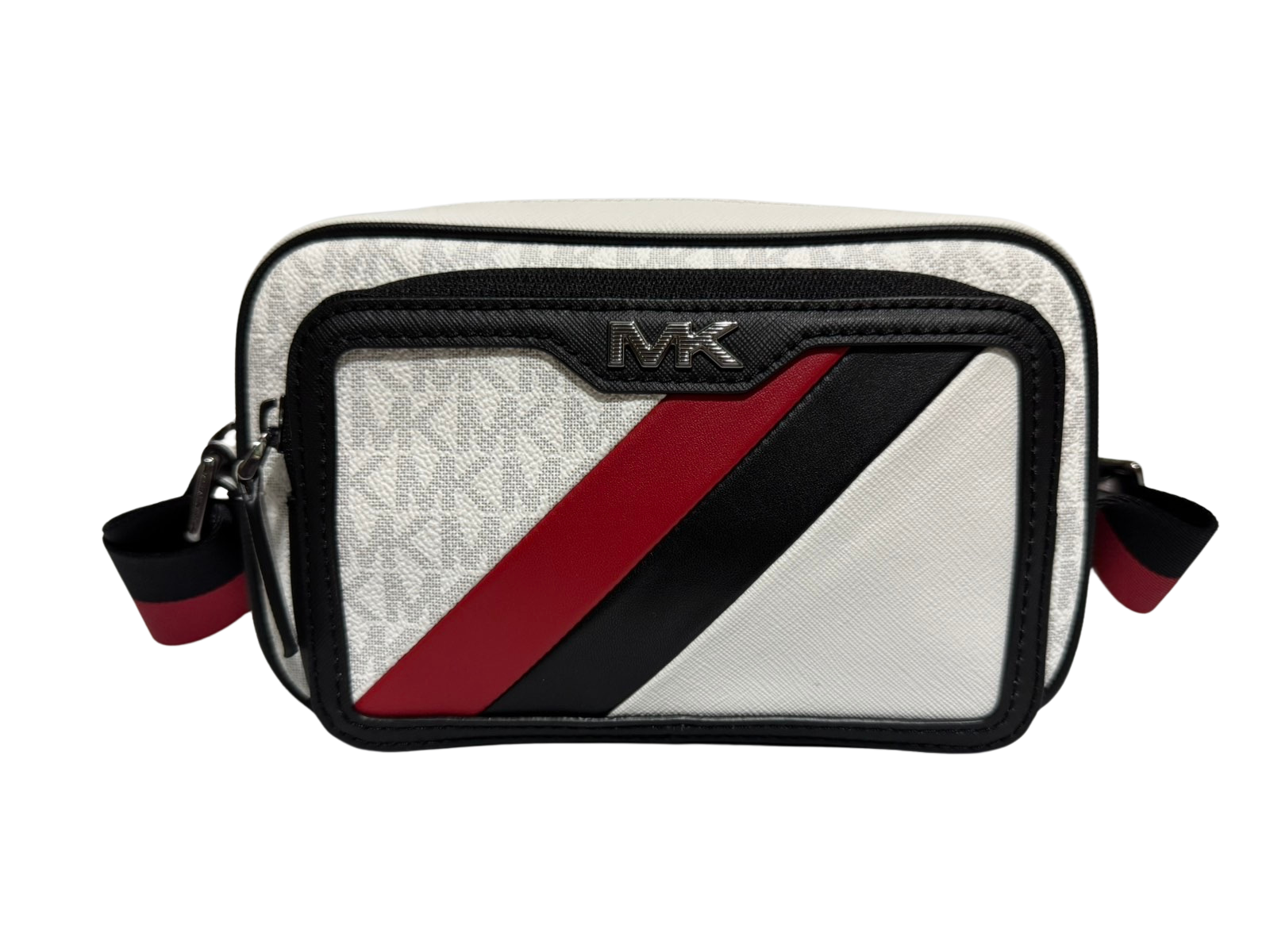 Michael Kors Rivington Striped Logo Camera Bag (White/Bright Red)