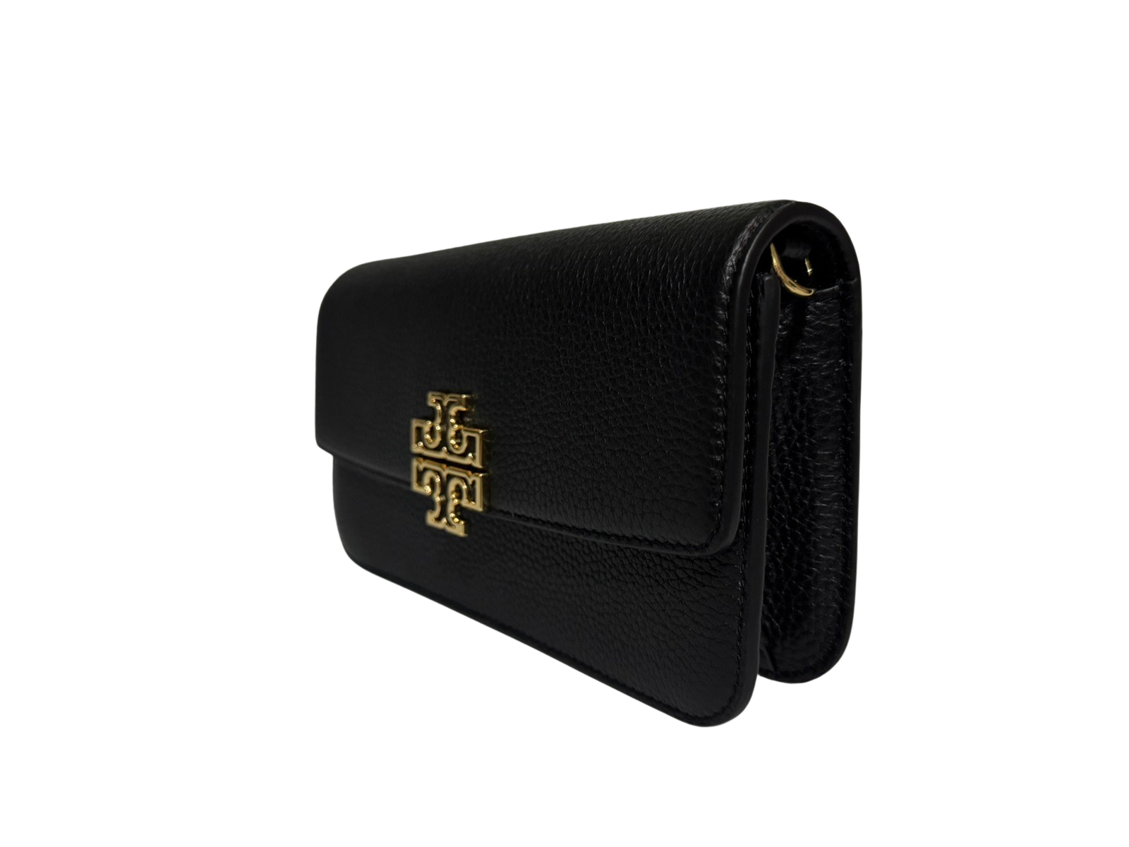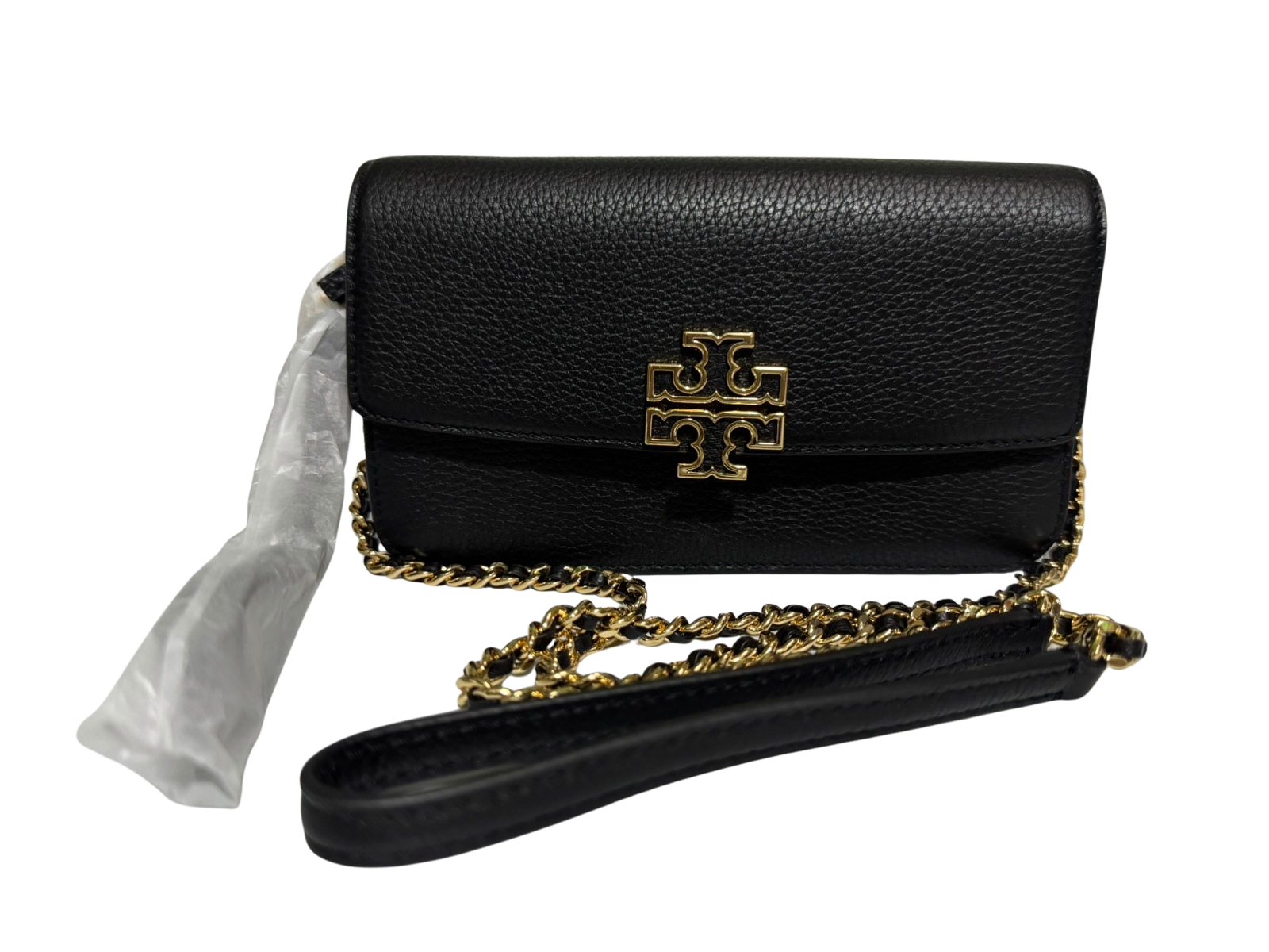 Tory Burch Britten Chain Wallet with Wristlet Leather Crossbody (Black)