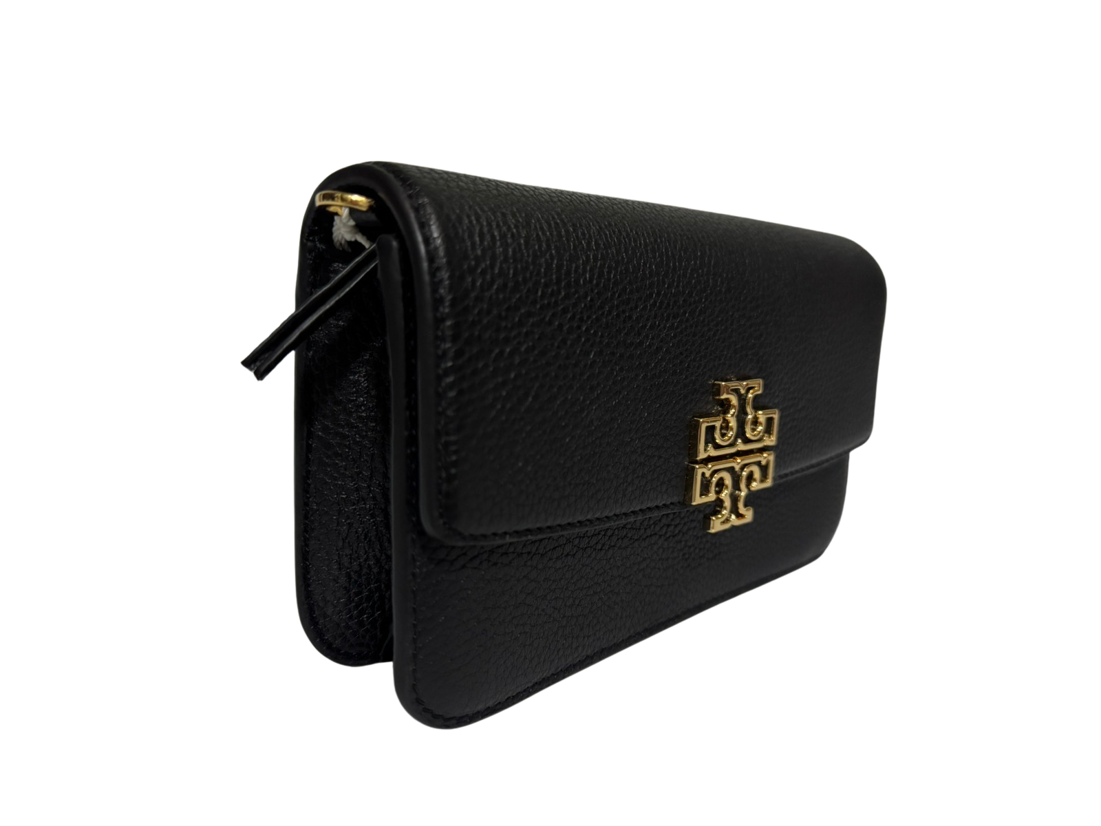 The Tory Burch Britten Chain Wallet with Wristlet in black leather offers a sophisticated fusion of style and function. Designed with multiple compartments, it keeps essentials neatly organized. The detachable chain strap and leather wristlet provide adaptable carrying options, making it suitable for a variety of occasions. Crafted from premium leather, this wallet delivers both durability and timeless elegance, perfect for elevating your everyday accessories.